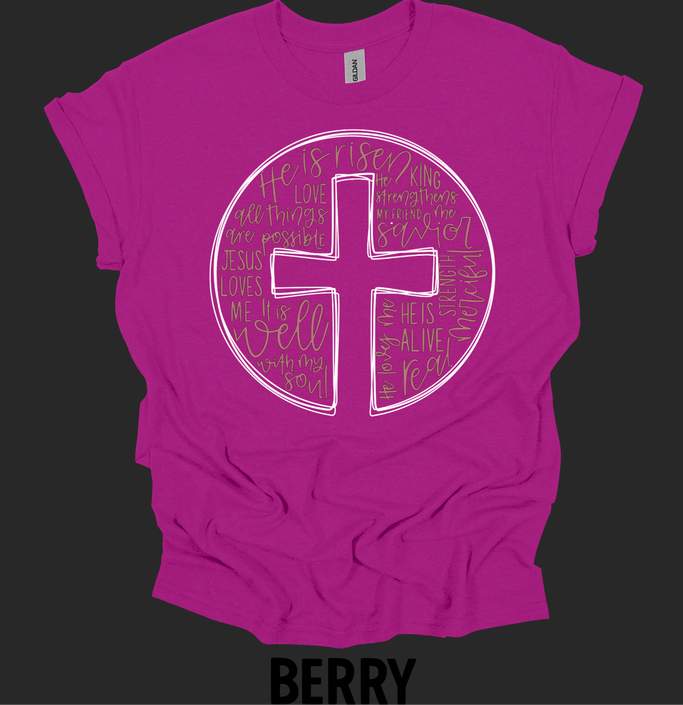 Image 1 of 1 He is Risen $17.00 Color: Select Color Berry Size: Select Size Large XLarge Quantity: Add To Cart Added!